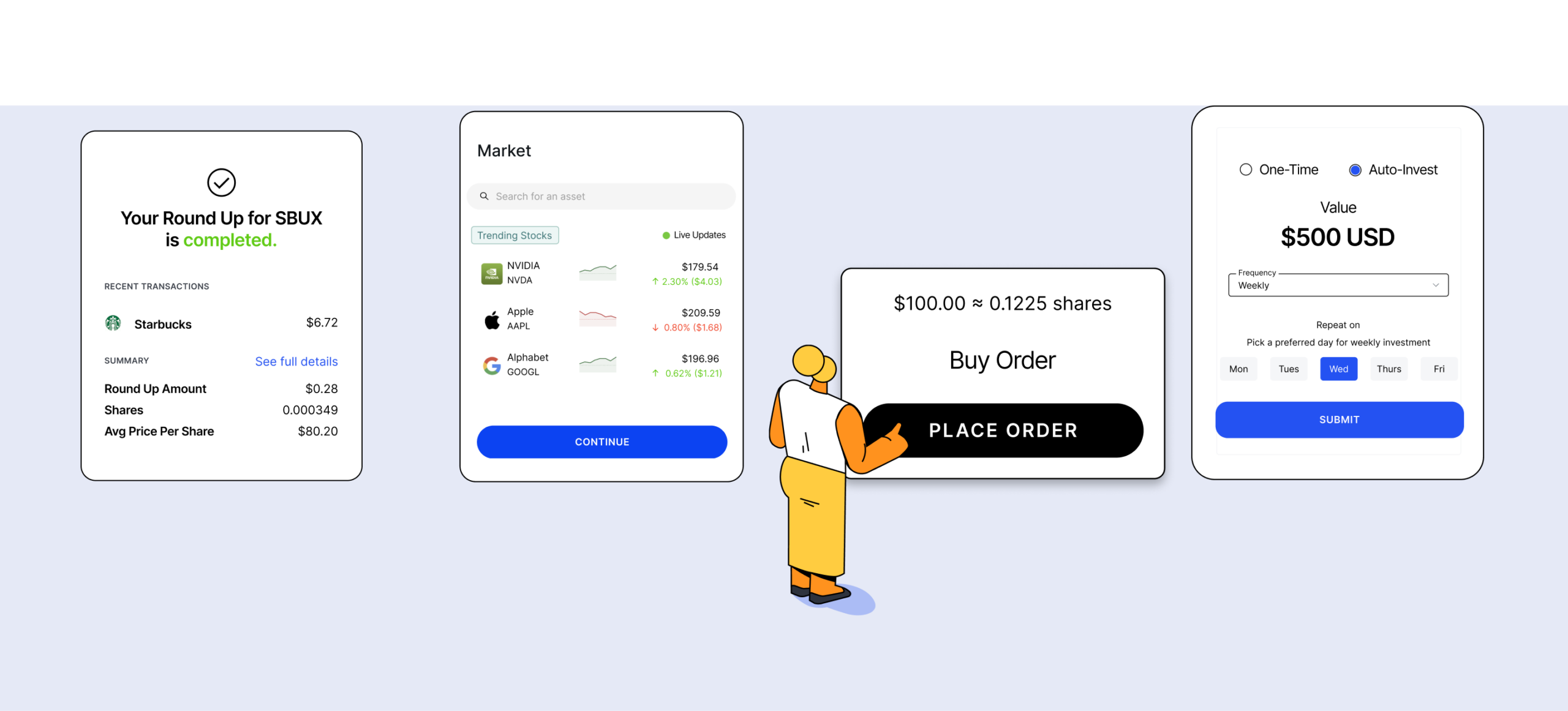 Embed investing directly into your platform and meet your customers where they are—delivering instant market access through intuitive features that make investing simpler, more accessible, and part of everyday life.